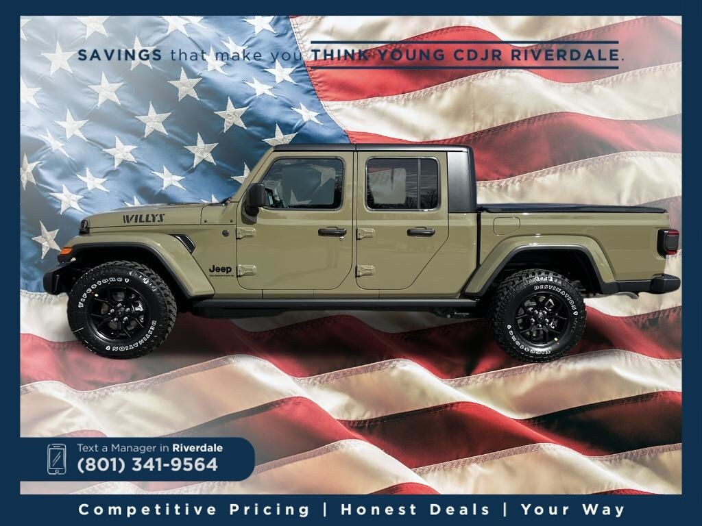 2026 Jeep Gladiator Willys 41 3.6L V6 24V VVT 8-Speed Automatic 4WD Price includes: $2,000 Neighborhood Discount: Neighborhood Discount applies to the state of Utah, Uintah County, and Evanston, WY. See dealership for complete details. $2,000 Finance Discount: Must finance through Young Chrysler Jeep Dodge Ram of Layton or one of their approved lenders to qualify.