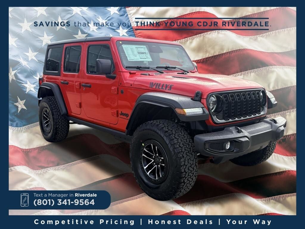 2026 Jeep Wrangler Willys firecracker red clearcoat 3.6L V6 24V VVT 8-Speed Automatic 4WD Price includes: $2,000 Neighborhood Discount: Neighborhood Discount applies to the state of Utah, Uintah County, and Evanston, WY. See dealership for complete details. $2,000 Finance Discount: Must finance through Young Chrysler Jeep Dodge Ram of Layton or one of their approved lenders to qualify.