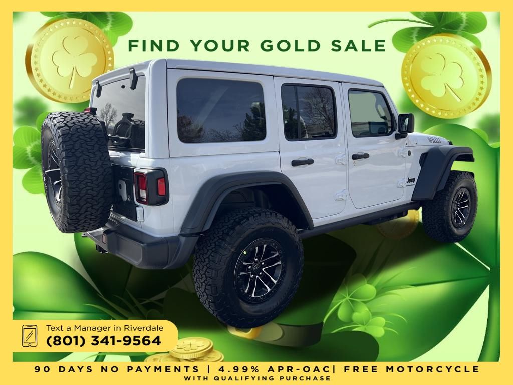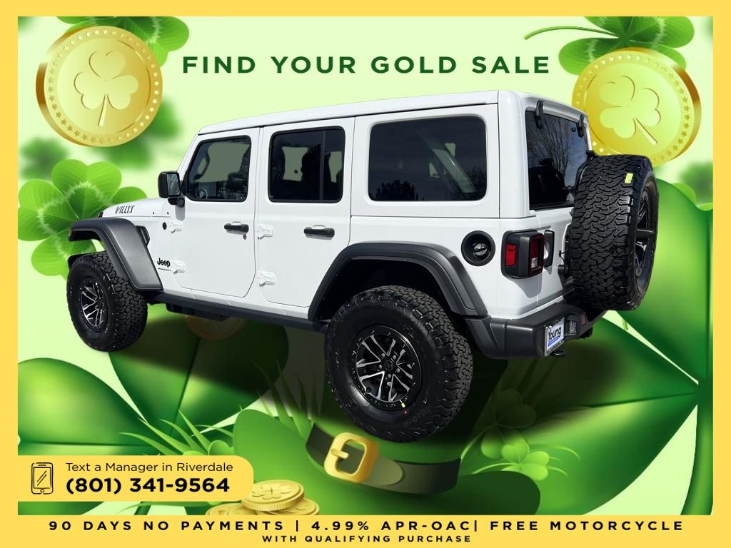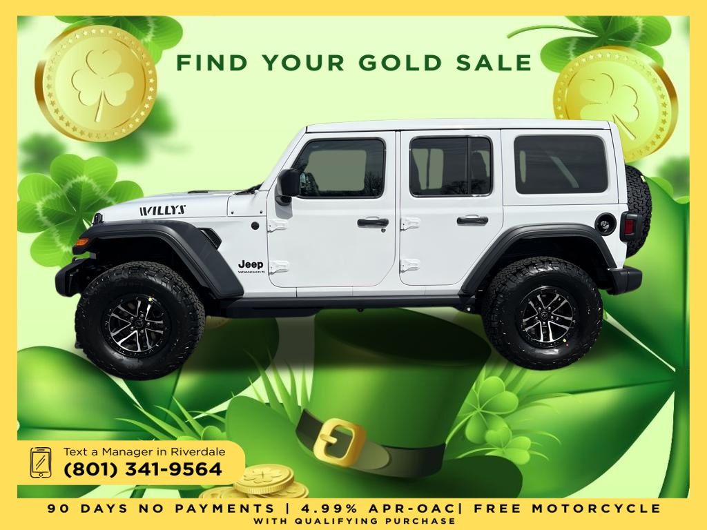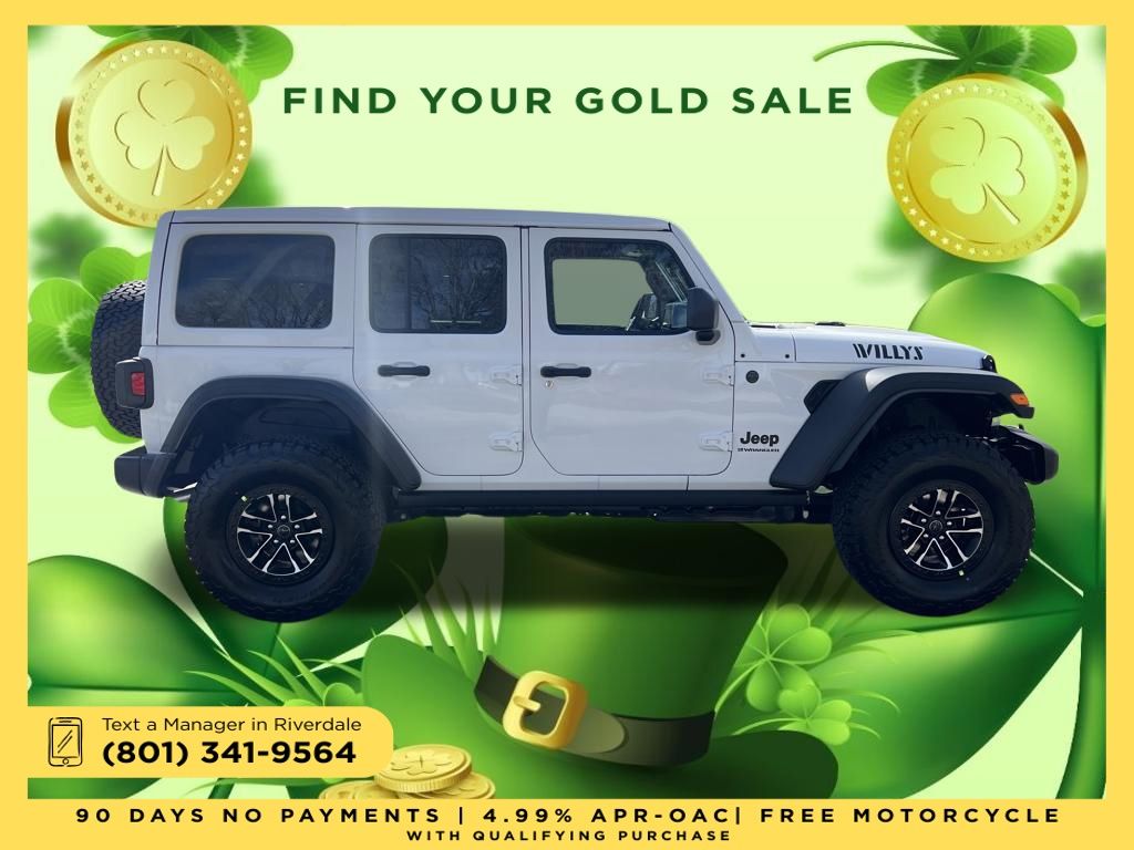 2026 Jeep Wrangler Willys Bright White Clearcoat 3.6L V6 24V VVT 8-Speed Automatic 4WD Price includes: $2,000 Neighborhood Discount: Neighborhood Discount applies to the state of Utah, Uintah County, and Evanston, WY. See dealership for complete details. $2,000 Finance Discount: Must finance through Young Chrysler Jeep Dodge Ram of Layton or one of their approved lenders to qualify.