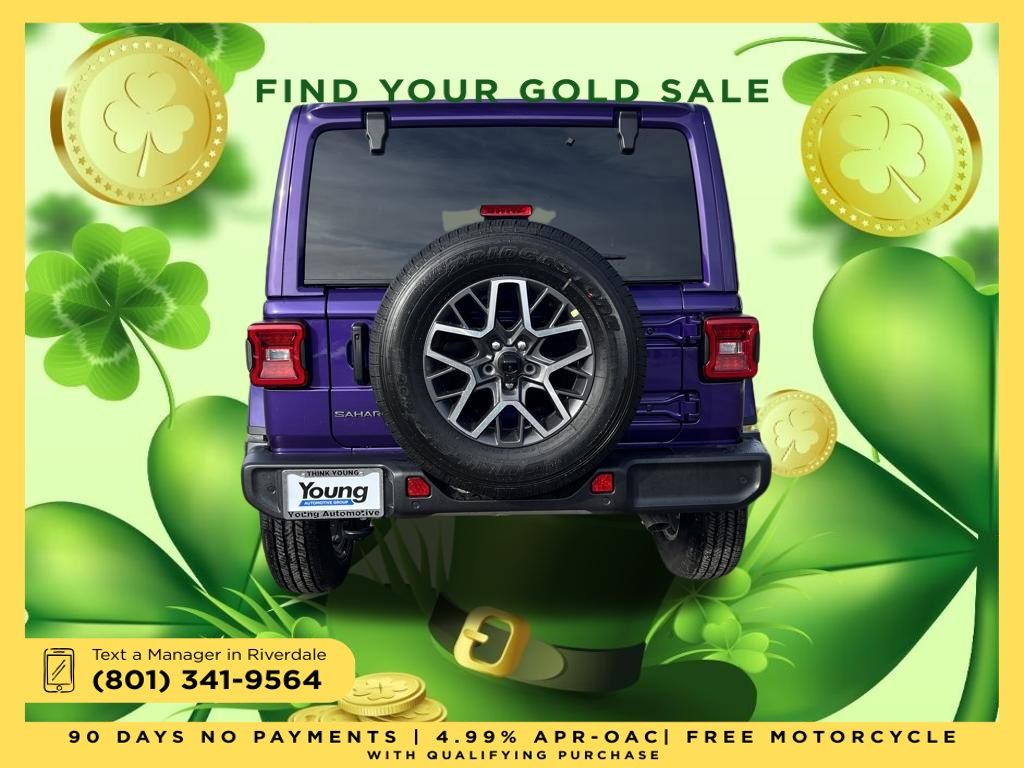 2026 Jeep Wrangler Sahara Reign 2.0L I4 DOHC 8-Speed Automatic 4WD Price includes: $2,000 Neighborhood Discount: Neighborhood Discount applies to the state of Utah, Uintah County, and Evanston, WY. See dealership for complete details. $2,000 Finance Discount: Must finance through Young Chrysler Jeep Dodge Ram of Layton or one of their approved lenders to qualify.