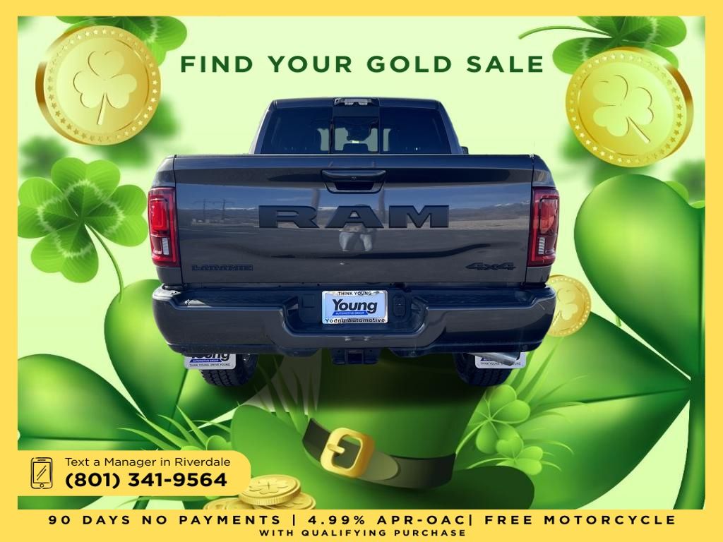 The 2025 Ram 2500 Laramie combines robust heavy-duty performance with upscale interior comfort and advanced tech. Built to deliver on demanding jobs while keeping occupants well-appointed, its a truck that works hard and treats you well. Price includes: $2,000 Neighborhood Discount: Neighborhood Discount applies to the state of Utah, Uintah County, and Evanston, WY. See dealership for complete details. $2,000 Finance Discount: Must finance through Young Chrysler Jeep Dodge Ram of Layton or one of their approved lenders to qualify.