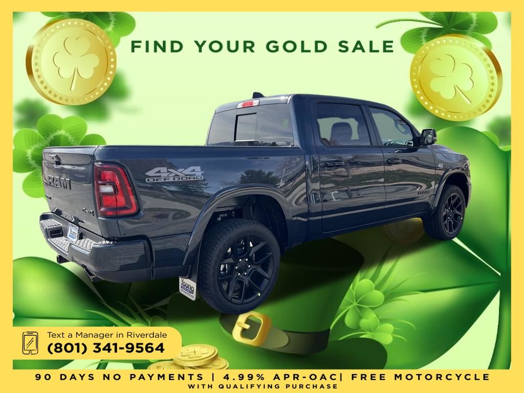 2026 Ram 1500 Laramie Forged Blue Metallic HEMI 5.7L V8 Multi Displacement VVT eTorque 8-Speed Automatic 4WD Price includes: $2,000 Neighborhood Discount: Neighborhood Discount applies to the state of Utah, Uintah County, and Evanston, WY. See dealership for complete details. $2,000 Finance Discount: Must finance through Young Chrysler Jeep Dodge Ram of Layton or one of their approved lenders to qualify.