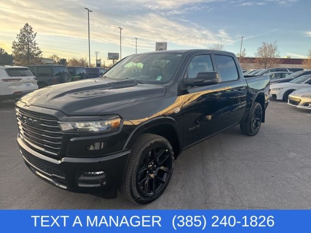 2026 Ram 1500 Laramie Diamond Black Crystal Pearlcoat HEMI 5.7L V8 Multi Displacement VVT eTorque 8-Speed Automatic 4WD Price includes: $1000 - 2026 National Bonus Cash . Exp. 03/31/2026 $3500 - 2026 National Retail Consumer Cash . Exp. 03/31/2026 $2,000 Finance Discount: Must finance through Young Chrysler Jeep Dodge Ram of Layton or one of their approved lenders to qualify. $2,000 Neighborhood Discount: Neighborhood Discount applies to the state of Utah, Uintah County, and Evanston, WY. See dealership for complete details.