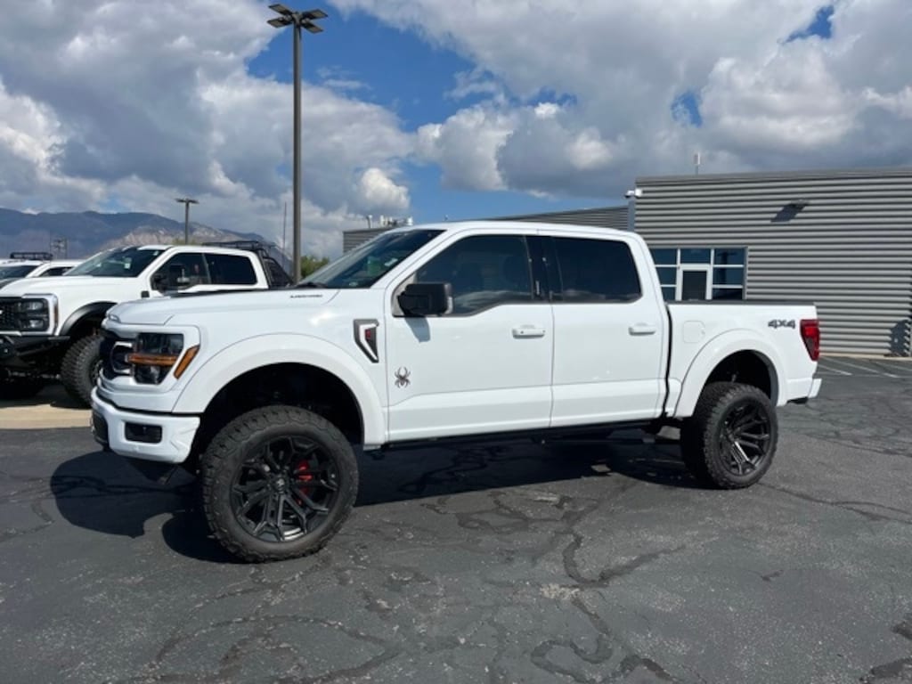 2024 Ford F-150 Black Widow Edition a bold, lifted truck that blends aggressive off-road styling with modern tech and comfort. This beast features a factory-authorized Black Widow package including a 6-inch suspension lift, 20" Black Widow wheels wrapped in 35" all-terrain tires, performance exhaust, and exclusive Black Widow badging and styling. Powered by a 5.0L V8 and paired with a 10-speed automatic, its as strong as it looks. The truck also boasts premium interior upgrades like leather-trimmed seats, custom red stitching, Black Widow gauges, and a large touchscreen with SYNC 4 and Apple CarPlay/Android Auto.