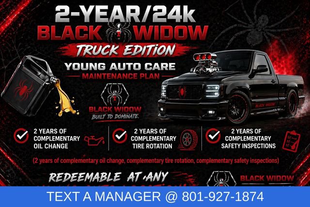 Some trucks don't just show up they make an entrance before the engine even turns over. The 2025 Ford F-150 XL Black Widow Edition is built to do exactly that. Finished in Metallic Matte Black and sitting in a lowered single cab stance, this truck brings an aggressive, street-focused look that's impossible to ignore. Under the hood, the 5.0L Supercharged V8 delivers serious power, giving you performance that feels just as bold as it looks. Paired with 4WD, it combines muscle and capability in one unique package. This is not your average F-150its a custom-built statement on wheels.Inside, the F-150 Black Widow Edition offers a clean and focused cabin designed to match its bold exterior personality. The single cab layout keeps things simple while still delivering comfort for every drive. Whether you're cruising through town or pulling up somewhere that matters, this truck brings confidence with it. This vehicle also includes the 2-Year/24k Young Auto Group Complimentary Maintenance Plan for added peace of mind. That means two years of complimentary oil changes, complimentary tire rotations, and complimentary safety inspections to help keep your truck running strong. Tax, title, and license fees extra, and the vehicle is subject to prior sale.