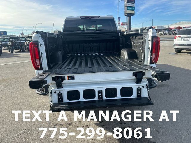 BLUETOOTH, BACK UP CAMERA, APPLE CARPLAY/ANDROID AUTO, 10-Speed Automatic, 4WD, Dark Walnut/Slate Leather, 10-Way Power Driver Seat Adjuster w/Lumbar, 10-Way Power Passenger Seat Adjuster w/Lumbar, 12-Volt Rear Auxiliary Power Outlet, 120-Volt Bed Mounted Power Outlet, 120-Volt Instrument Panel Power Outlet, 18 Machined Aluminum Wheels, 2-Speed Active Transfer Case, 2nd Row Dual USB Charge-Only Ports, 3.73 Rear Axle Ratio, 4-Wheel Disc Brakes, 4.2 Diagonal Color Display Driver Info Center, 6 Speakers, 6-Speaker Audio System Feature, ABS brakes, Air Conditioning, Alloy wheels, AM/FM radio: SiriusXM with 360L, Apple CarPlay/Android Auto, Auto-dimming door mirrors, Auto-dimming Rear-View mirror, Automatic temperature control, Brake assist, Bumpers: chrome, Chrome Surround Grille w/High Gloss Black Mesh, Compass, Compass Located In Instrument Cluster, Deep-Tinted Glass, Delay-off headlights, Driver door bin, Driver Memory, Driver vanity mirror, Dual front impact airbags, Dual front side impact airbags, Electric Rear-Window Defogger, Electrical Lock Control Steering Column, Electronic Stability Control, Emergency communication system: OnStar and GMC Connected Services capable, Front 40/20/40 Split-Bench Seats w/Lockable Storage, Front anti-roll bar, Front Center Armrest w/Storage, Front dual zone A/C, Front fog lights, Front reading lights, Front wheel independent suspension, Fully automatic headlights, GMC Connected Access Capable, Heated door mirrors, Heated Driver & Front Outboard Passenger Seats, Heated front seats, Heated steering wheel, Heavy-Duty 80 Amp Battery, Hitch Guidance w/Hitch View, Illuminated entry, In-Vehicle Trailering System App, Integrated Trailer Brake Controller, Keyless Open & Start, LED Cargo Area Lighting, Low tire pressure warning, Manual Tilt-Wheel/Telescoping Steering Column, Memory seat, Occupant sensing airbag, OnStar & GMC Connected Services Capable, Outside temperature display, Overhead airbag, Overhead console, Panic alarm, Passenger door bin, Passenger vanity mirror, Perf Leather-Appointed Front Outboard Seat Trim, Pickup Box, Power Door Locks, Power door mirrors, Power driver seat, Power Front Passenger Windows w/Express Up/Down, Power passenger seat, Power Rear Windows w/Express Down, Power steering, Power windows, Power Windows w/Driver Express Up/Down, Premium audio system: Premium GMC Infotainment System, Radio: AM/FM w/Premium GMC Infotainment System, Rear reading lights, Rear seat center armrest, Rear step bumper, Rear Wheelhouse Liners, Rear window defroster, Remote keyless entry, Remote Vehicle Starter System, Security system, SiriusXM w/360L, Speed control, Speed-sensing steering, Split folding rear seat, Steering Wheel Audio Controls, Steering wheel mounted audio controls, Suspension Package, Tachometer, Telescoping steering wheel, Tilt steering wheel, Traction control, Trip computer, Turn signal indicator mirrors, Unauthorized Entry Theft-Deterrent System, Variably intermittent wipers, Voltmeter, Wi-Fi Hotspot Capable, Wireless Phone Projection. Summit White Duramax 6.6L V8 Turbodiesel 10-Speed Automatic 4WD