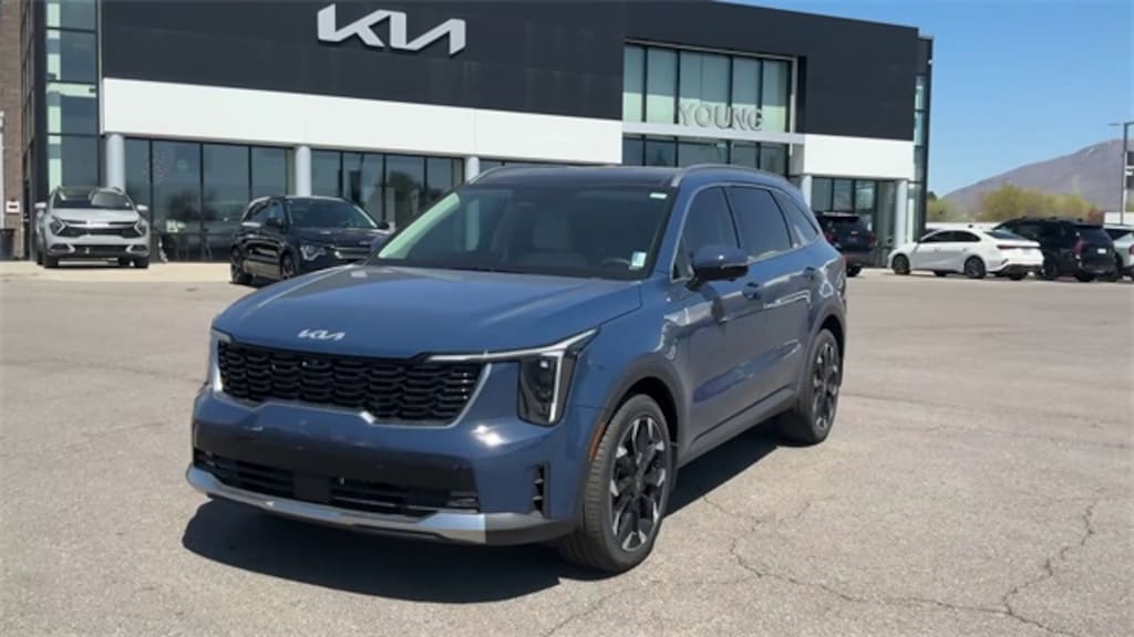 2025 Kia Sorento SX Midnight Lake Blue FWD 8 Speed Dual Clutch 2.5L I4 DGI Turbocharged DOHC 16V LEV3-SULEV30 281hp Recent Arrival! Odometer is 1818 miles below market average! 20/29 City/Highway MPG
